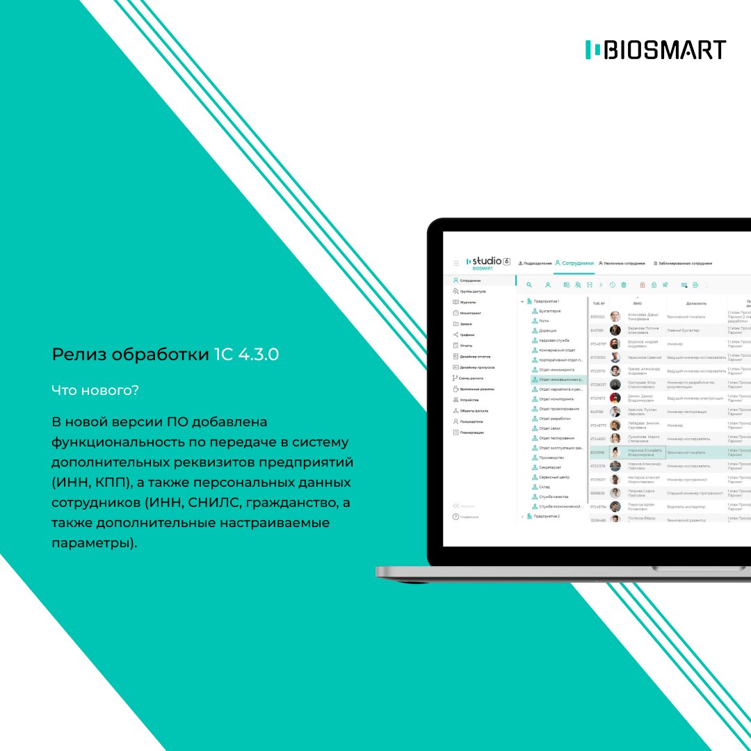 • Релиз модуля внешней обработки 1С. Версия 4.3.0 BIOSMART